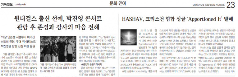 뮤직타임 [기사] HASHAV, 크리스천 힙합 싱글 ‘Apportioned It’ 발매(기독일보)