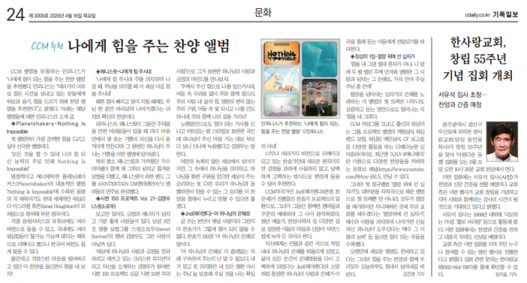 뮤직타임 [기획기사] CCM 추천, 나에게 힘을 주는 찬양 앨범(기독일보)